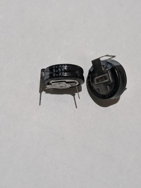 Тип оборудования: Конденсаторы Цена указана за 2 шт. Новые. Ионистор (суперконденсатор) 0,33F 5,5V. ELNA. Размер 11,5*5мм. H тип. Горизонтальная установка. Полярный. Максимально допустимое напряжение использования: 5,5В.