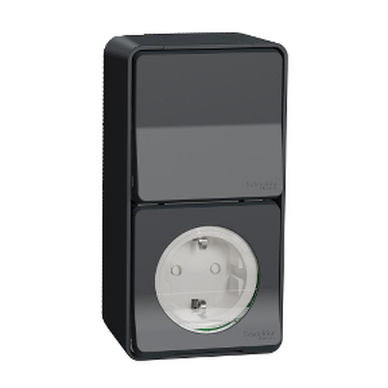 Блок из розетки и переключателя в сборе ip55 для поверхностного монтажа черный mureva styl...