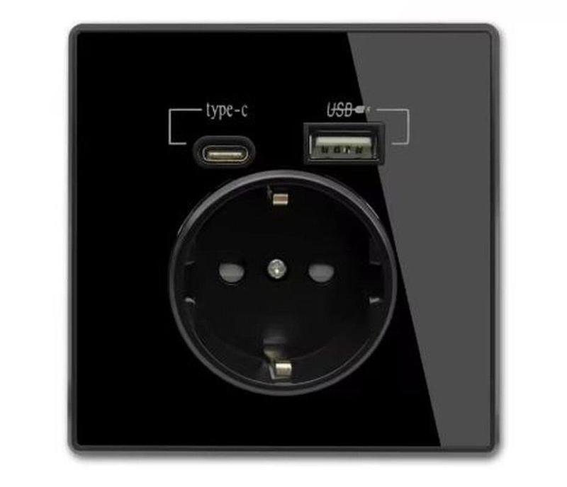 Розетка настенная wallpad с разъемом type-c, usb-портом для зарядки, black