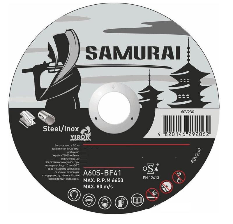 Диск отрезной металл нержавейка samuray ø-125х22.23х1.2мм vr-60v127
