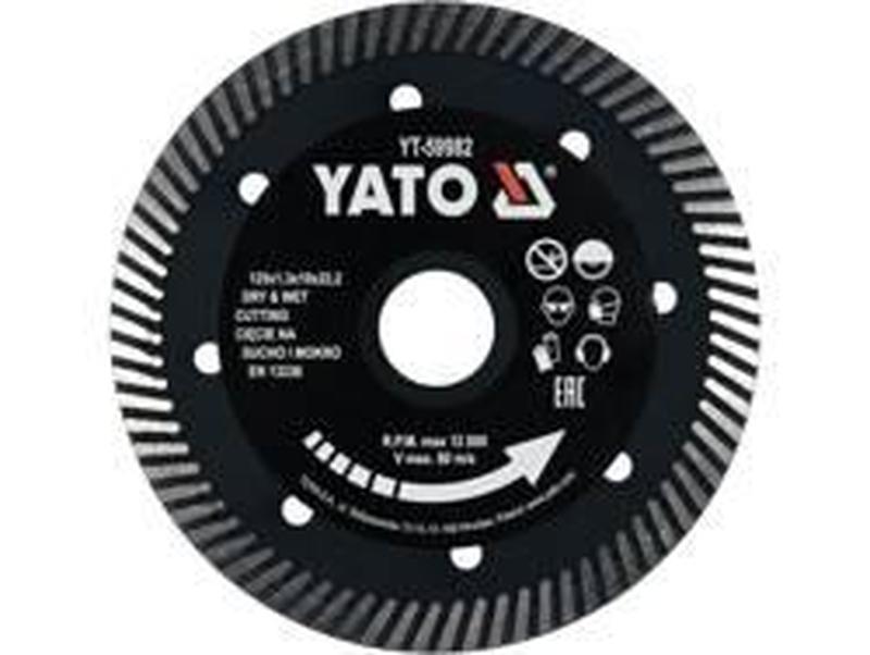 Диск алмазный грескерамика turbo ø-125x1.3x10x22.2мм мокрый/сухой yato yt-59982
