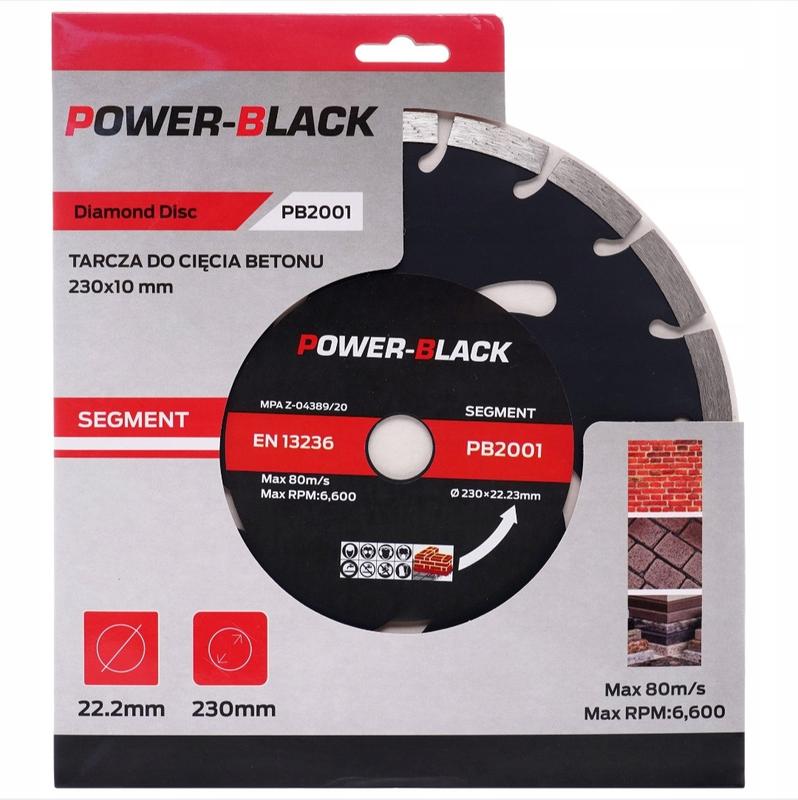 Алмазный диск SEGMENT для резки бетона, плитки 230 х 22,2 мм, зернистость 10 мм Состав комплекта Алмазный диск SEGMENT для резки Технические данные Модель: PB2001 Диаметр диска Ø - 230 мм Диаметр отверстия Ø - 22,2 мм Толщина циферблата - 2,7 мм Ширина насыпи - 10 мм Тип сегмента - СЕГМЕНТ Максимальная скорость вращения - 6600 об/мин Максимальная окружная скорость - 80 м/с Сегментный алмазный диск POWER-BLACK -- идеальный выбор для резки очень твердых и средних строительных материалов, таких как бетон, кирпич, брусчатка, клинкер, газобетон, керамическая плитка. Лезвие имеет гладкое лезвие, что позволяет легко работать в твердом материале, не рискуя повредить его хрупкие края. Алмазный диск POWER-BLACK turbo выполнен по новейшей технологии производства - имеет спеченную широкую насыпь типа SEGMENT с высокой концентрацией алмазов. Это продлевает срок службы лезвия и обеспечивает еще более точный, чистый и быстрый рез. Диск имеет компенсационные канавки, которые охлаждают диск и, таким образом, предотвращают деформацию и повышают его долговечность и эффективность. Диск POWER-BLACK идеально подходит для использования всухую на угловых шлифовальных и отрезных машинах. Бренд TAGRED Польша