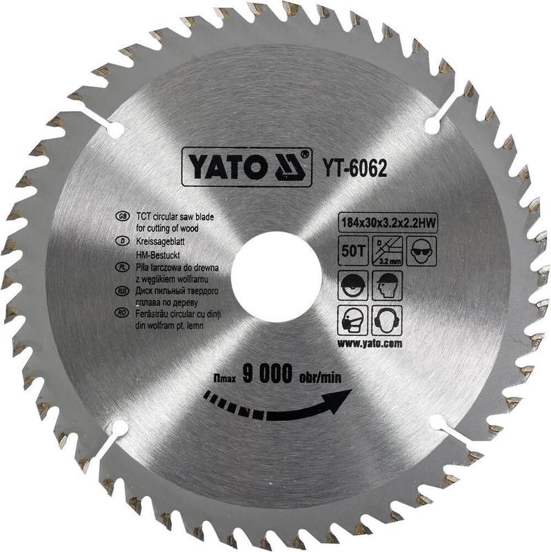 Диск пиляльний для дерева 184 х 30 х 3,2 х 2,2 мм, 50 зубців yato — yt-6062