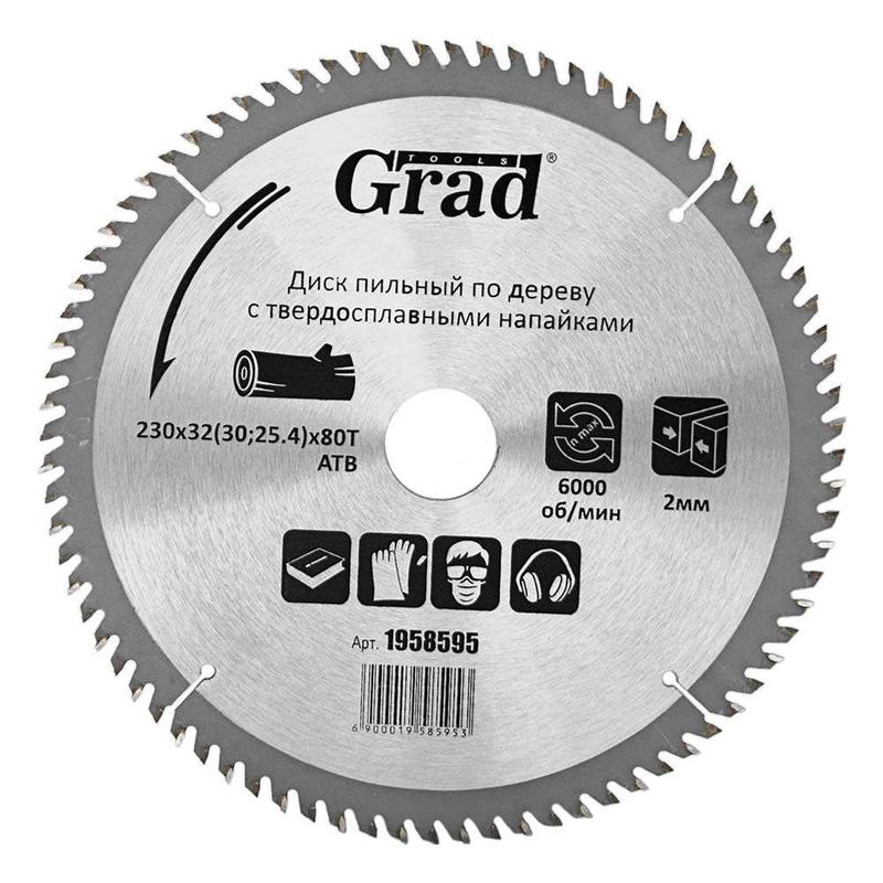 Диск пильный grad ø230х32 с твердосплавными зубьями для резки дерева фанеры дсп мдф 6000об...