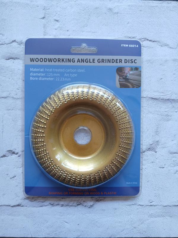 Шліфувальний диск фреза (рашпіль) по дереву для КШМ призначений для прямої і фігурної обробки деревини, пластика, алюмінію, лаку, гіпсу, пінобетону, газобетону, фанери, шпаклівки, м'якої та твердої деревини і тощо. Підходить для всіх типів болгарок з посадковим діаметром 22,23 мм. Характеристики: - ### Шліфувальний диск (фреза по дереву) 125 мм; - ### Матеріал: термооброблена вуглецева сталь; - ### Зовнішній діаметр диска: 125 мм; - ### Діаметр отвору: 22,23 мм; - ### Максимальна швидкість обертання: 11500 оборотів в хвилину. - ### Застосування: фарби, лаки, шпаклівки, дерево, ДСП, ДВП. Шліфувальний диск фреза (рашпіль) по дереву для КШМ призначений для прямої і фігурної обробки деревини, пластика, алюмінію, лаку, гіпсу, пінобетону, газобетону, фанери, шпаклівки, м'якої та твердої деревини і тощо. Підходить для всіх типів болгарок з посадковим діаметром 22,23 мм. Характеристики: - ### Шліфувальний диск (фреза по дереву) 125 мм; - ### Матеріал: термооброблена вуглецева сталь; - ### Зовнішній діаметр диска: 125 мм; - ### Діаметр отвору: 22,23 мм; - ### Максимальна швидкість обертання: 11500 оборотів в хвилину. - ### Застосування: фарби, лаки, шпаклівки, дерево, ДСП, ДВП.