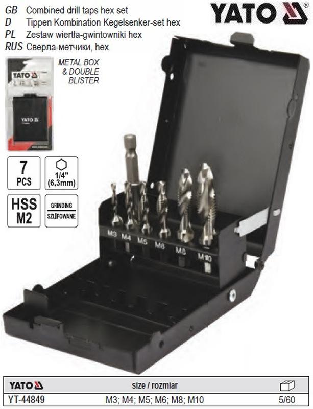 Набир свердл митчикив yato польща м3-м10 hss м2 hex-1/4" подовжувач l=60 мм 7 штук yt-4484...