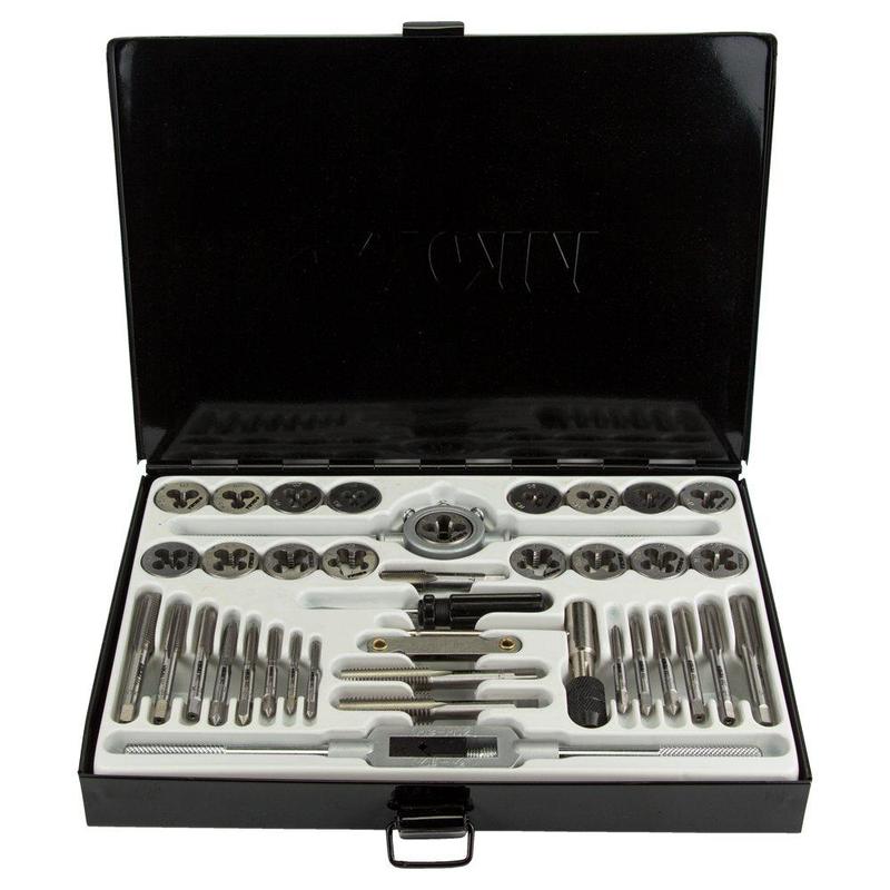 Набор плашек и метчиков 40 предметов (металлический кейс) Sigma (1643251) предназначен для нарезания внутренней и внешней метрической резьбы на металлических изделиях, для калибровки и восстановления повреждённых участков резьбы. При нарезании резьбы метчик предварительно смазывают консистентной смазкой, например, солидолом. Особенности: - Рифлёные поверхности на ручках держателей для предотвращения проскальзывания инструмента; - Удобный и прочный кейс для переноски и хранения; - Подходит для широкого диапазона материалов; - Плашки, благодаря высокой жёсткости, дают возможность получить резьбу высокого качества; - Метчики предназначены для нарезания резьбы как в сквозных, так и глухих отверстий. - Квалитет - 6g; - Угол профиля резьбы - 60º; - Сбег резьбы - для плашек: 2х2Р; для метчиков: 5Р; - Тип отверстий - для метчиков: глухие, сквозные; - Стандарт - плашки DIN 233, метчики DIN 352. Комплектация: - Плашки: М3х0.5, М3х0.6, М4х0.7, М4х0.75, М5х0.8, М5х0.9, М6х0.75, М6х1.0, М7х0.75, М7х1.0, М8х1.0, М8х1.25, М10х1.5, М10х1.25, М12х1.5, М12х1.75, 1/8-27; - Метчики: М3х0.5, М3х0.6, М4х0.7, М4х0.75, М5х0.8, М5х0.9, М6х0.75, М6х1.0, М7х0.75, М7х1.0, М8х1.0, М8х1.25, М10х1.5, М10х1.25, М12х1.5, М12х1.75, 1/8-27; - Держатель для плашек - 1шт; - Держатель для метчиков - 1шт; - Держатель для метчиков Т-образный храповый - 1шт; - Резьбомер - 1шт; - Отвёртка - 1шт. Как правильно нарезать метрическую резьбу с помощью плашек и метчиков смотрите на видео: Купить набор плашек и метчиков Sigma Вы можете, оформив заказ в нашем интернет-магазине с помощью простой формы, доставка осуществляется по всей Украине. Если у Вас возникли вопросы, Вы можете позвонить по указанным номерам телефонов или заказать обратный звонок. Специалисты нашего интернет-магазина предоставят Вам подробные консультации и помогут сделать правильный выбор.