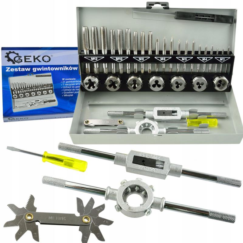 Набір мітчиків і плашок м3-м12 32шт. geko g38301