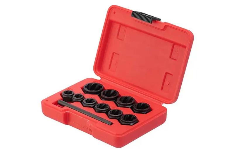 Набір екстракторів для пошкоджених болтів і гайок SD-8007 необхідний для демонтажу болтів і гайок, пошкоджених або стертих граней. Набір містить 10 екстракторів діаметр**********, 14, 15, 16, 17, 19 мм і виколотку для витягування застряглих кріплень. Всі елементи набору виготовлені з хромо- молібденової сталі, що гарантує високу міцність і тривалий термін експлуатації.