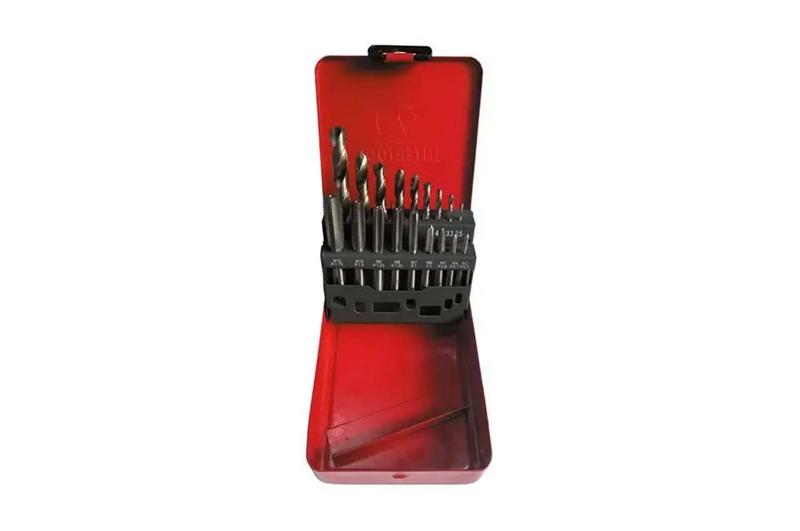 Набор метчиков и сверл предназначен для нарезки внутренних метрических резьб, а также предварительного просверливания металла. Диаметр сверл подобран под размер метчиков. Используются для калибровки, восстановления и ремонта поврежденных резьбовых участков. При нарезке обязательно используйте смазочную смазку. Такой набор резьбонарезного инструмента отлично подойдет для слесарей, домашних мастеров и автомехаников. Комплектация Метчики: М3х0.5, М4х0.7, М5х0.8, М6х1.0, М7х1.0, М8х1.25, М9х1.25, М10х1.5, М12х1.75; Сверла: 2.5, 3.3, 4.2, 5.0, 6.**********.