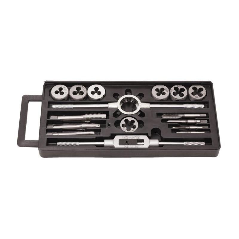 Набор метчиков и плашек SCHEPPACH SCH-PD016-1 — это профессиональный комплект из 16 предметов, предназначенный для нарезания метрической резьбы в отверстиях. Он идеально подходит для использования в различных сферах, где требуется работа с резьбовыми соединениями. Основные преимущества: Высокое качество: Инструменты изготовлены из прочной инструментальной стали, обеспечивающей долгий срок службы и возможность нарезания резьбы даже на прочных сплавах. Профессиональный класс: Набор предназначен для профессионального использования, что гарантирует его надежность и износостойкость. Удобное хранение: Набор поставляется в прочном кейсе для удобного хранения и транспортировки. Комплектация: Метрические метчики: М3х0.5, М4х0.7, М5х0.8, М6х1, М8х1.25, М10х1.5, М12х1.75 (7 шт.) Метрические плашки: М3х0.5, М4х0.7, М5х0.8, М6х1, М8х1.25, М10х1.5, М12х1.75 (7 шт.) Метчикодержатель М3-М12 (1 шт.) Плашкодержатель 25мм O/D (1 шт.) Кейс (1 шт.) Области применения: Профессиональный ремонт и обслуживание оборудования Промышленное производство Ремонт автомобилей Любые работы, где требуется нарезание метрической резьбы Технические характеристики: Тип резьбы: Метрическая Количество предметов: 16 Материал: Инструментальная сталь Упаковка: Кейс