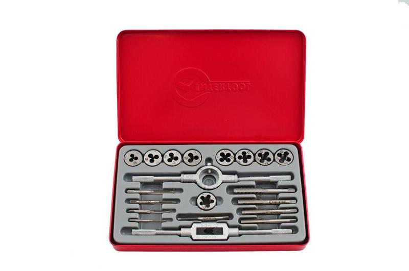 Набор метчиков и плашек "Intertool" профессиональный (М3, М4, М5, М6, М7, М8, М10 и М12) + плашкодержатель и метчикодержатель. Всего в наборе 20 предметов. Размеры: М3x0.5, М4x0.7, М5x0.8, М6x1.0, М7x1.0, М8x1.25, М9x1.25, М10x1.5, М12x1.75; Количество единиц в наборе: 20 ед.