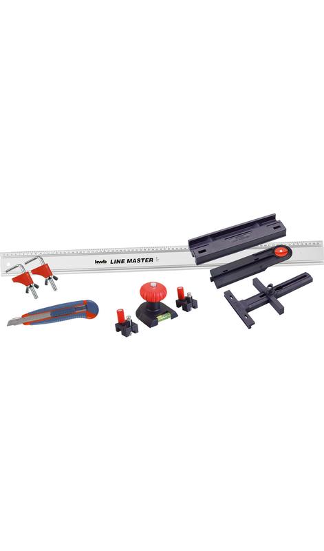 Универсальный комплект kwb LINE MASTER (10 предметов) Line Master - это комплексная система для разнообразного применения. для измерения, расчерчивания, разметки, маркировки и резания; в качестве направляющей для "kwb-дюбельпрофи" при последовательном серийном точном сверлении, как направляющая для электрических лобзиков, фрезеров, циркулярных пил, как опора, упорный угольник, шаблон, угломер, уровень. LINE MASTER универсальный набор. Содержит: Линейка 800 мм Арт. 784208 Упорный угольник Арт. 784300 Направляющая для электроинструментов Арт. 784400 Приспособление для раскроя погонажного материала Арт. 784600 Набор для разметки с точечной маркировкой из 3 предметов Две фиксирующих струбцины Арт. 784500 Нож дизайнера Арт. 0140-00 Линейка 800 мм изготовленная из оксидированного алюминия, ширина 58 мм, толщина 10 мм. Линейки Line Master со своими направляющими пазами образует основу системы Line Master, обладающей непревзойденным разнообразием возможностей применения. Шкала в "мм" нанесена специальной краской на основе искусственных смол и поэтому чрезвычайно устойчива к истиранию. Упорный угольник- устойчивый угловой упор подходит ко всем трем прецизионным линейкам Line Master. Установка угла осуществляется с шагом в 15 градусов, от 30 до 150 градусов. Выдвижной упорный язычок на нижней стороне предоставляет возможность использовать на выбор упорный или накладной угольник. Направляющая для электроинструментов. Электрические лобзики и дисковые пилы (с пильным диском диаметром до 190 мм), а также вертикальные фрезеры перемещаются настолько надежно и точно, что непрямые и неточные пропилы окончательно уходят в прошлое. Направляющая для ножа. Вы можете надежно и с высокой точностью перемещать, ножи с обламываемым лезвием, трапециевидными и Г-образными лезвиями. Благодаря фиксации лезвия с обеих сторон, нож можно перемещать вперед и назад, не приподымая линейку Line Master. Набор для разметки с точечной маркировкой незаменимый помощник в многочисленных случаях настенного монтажа. Две фиксирующие струбцины - с помощью фиксирующего зажима Вы быстро и надежно зафиксируете все прецизионные линейки Line Master на заготовке