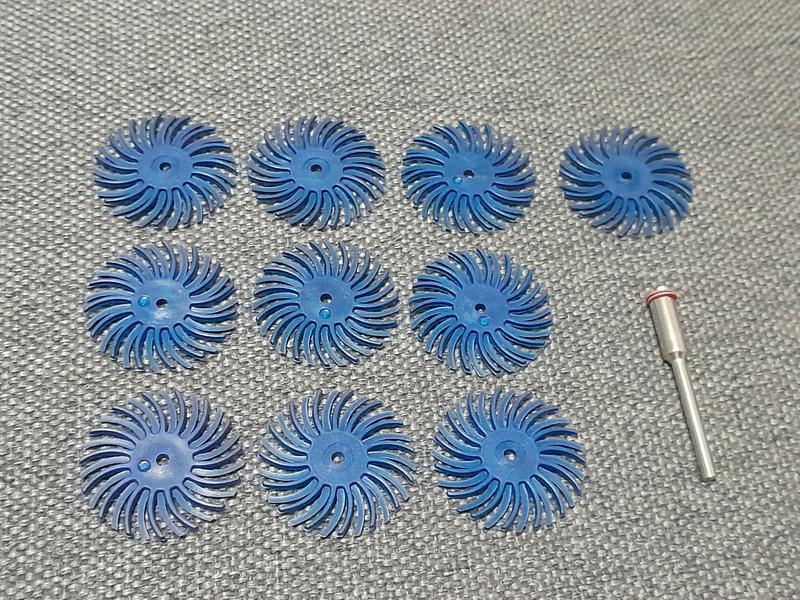 Щетки из абразивного полимера, зернистость 120 grit – идеальны для тонкой шлифовки, полировки и очистки металлов, пластика, ювелирных изделий и мелких деталей. У комплекті: 10 щеток зеленого цвета (120grit) Держатель диаметром 2.35 мм (под большинство граверов и дремелей) Подходят для: полировка серебра, меди, латуни, стали; ювелирных, часовых и модельных работ; очистка труднодоступных мест без перегрева детали. Гибкие лепестки деликатно снимают окись и мелкие царапины, не повреждая поверхность.