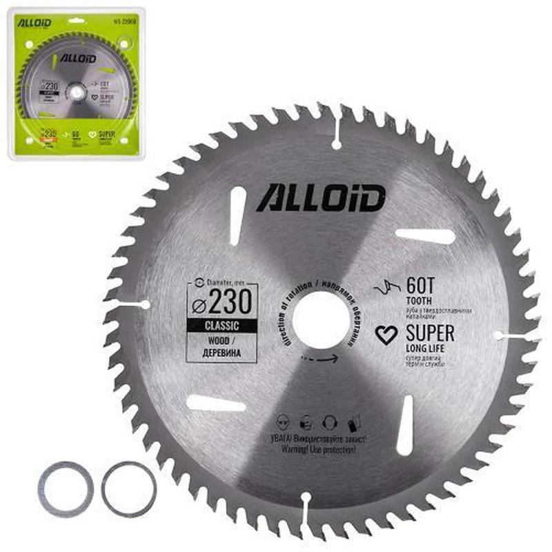 Alloid. диск пильный по дереву с твердосплавными напайками 230х30/25,4/22,2мм, 60 зубов