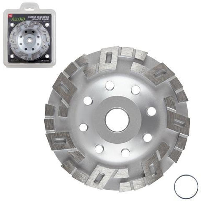 МАКСИМАЛЬНА ПРОДУКТИВНІСТЬ Алмазний шліфувальний диск Alloid Pro Advanced Segment 125 мм створений для інтенсивної роботи з бетоном, цеглою, каменем та іншими мінеральними матеріалами. Подвійні турбосегменти забезпечують рівномірне зняття шару й високу швидкість обробки. Застосування: - Шліфування бетону та цегли - Обробка кам’яних поверхонь - Підготовка основ під ремонт і облицювання - Видалення напливів та нерівностей Технічні характеристики • Тип: алмазний шліфувальний диск • Серія: Advanced Segment • Діаметр: 125 мм • Посадковий отвір: 22,23 мм • Конструкція: подвійні турбосегменти • Призначення: бетон, цегла, камінь • Комплектація: редукційне кільце - Подвійні турбосегменти для швидкої обробки - Рівномірне зняття матеріалу без глибоких подряпин - Ефективне охолодження під час роботи - Міцна основа для довгого ресурсу - Сумісність з більшістю УШМ 125 мм - бетон (свіжий, старий, армований), - цегла, - камінь (природний і штучний), - штукатурка, цементні стяжки, - асфальт, - тротуарна плитка.
