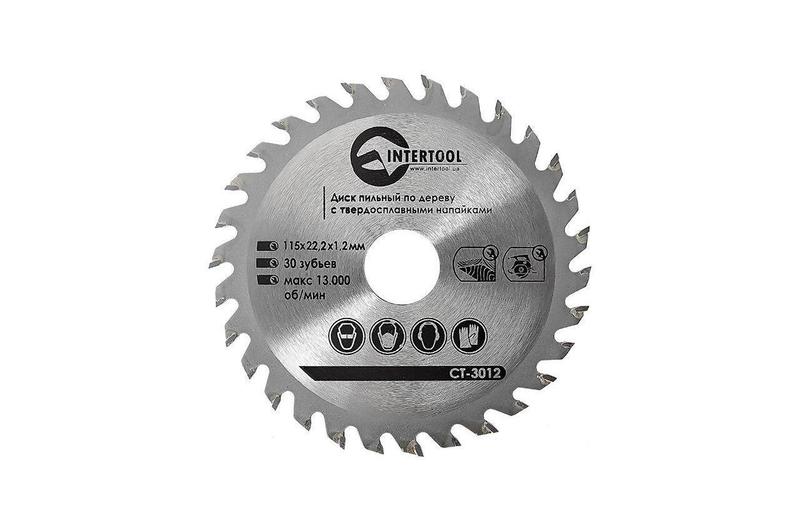 Пильный диск по дереву "Intertool" рассчитан на работу с УШМ, а также дисковыми пилами. Благодаря применению качественной инструментальной стали и высокоточного припоя зубьев, такие диски отличаются высокими эксплуатационными показателями. Сами зубья - изготавливаемые из крайне твердого сплава с точной алмазной шлифовкой. Зубья диска имеют чередующийся наклон, что обеспечивает точность и чистоту пропила. Такие диски можно использовать и для продольного, и для поперечного распила древесины различной твердости. Так как диск имеет компенсационные прорези, он может выдерживать высокие температуры при большой интенсивности работы, без деформации поверхности с минимумом колебаний, что позволяет снизить непосредственную нагрузку на подвижные части оборудования. Размеры 115 x 22,2 мм и имеет 30 "зубов" напайками. Количество зубьев: 30; Диаметр диска: 115 мм; Ширина пропила: 1.8 мм; Геометрия зуба: ATB; Диаметр посадочного отверстия: 22.2 мм; Толщина диска: 1.4 мм; Скорость вращения: 13000 об/мин; Угол заточки: 12 град