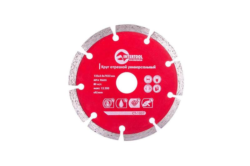 Алмазные диски для болгарки диаметром 125 мм отличаются высокой точностью реза. Алмазный круг с широкими зубьями подходит для резки твердых видов бетона, камня и кирпича, при этом тип резки можно использовать как сухой, так и мокрый, в зависимости от материала. Применение: для кирпича, камня и бетона; Диаметр диска: 125 мм; Высота кромки: 7 мм; Ширина кромки: 2 мм; Насыщенность алмазной крошкой: 22-24 %; Диаметр посадочного отверстия: 22 мм