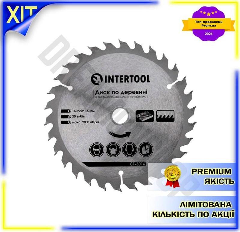 Dm диск пильный intertool спецификация 2.2 160 мм 30 зубьев для ушм и дисковых пил для дре...