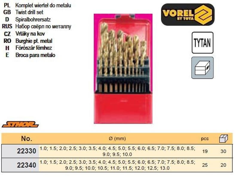 Набор сверл по металлу польша hss титан ø=1,0-13,0 мм 25 штук sthor-22340