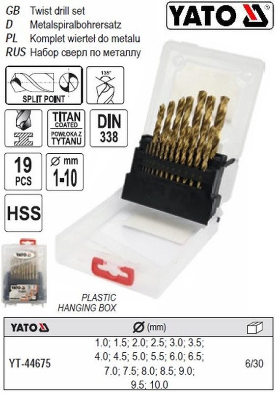 Набор сверл по металлу yato польща hss-tin ø=1-10 мм 19 штук yt-44675