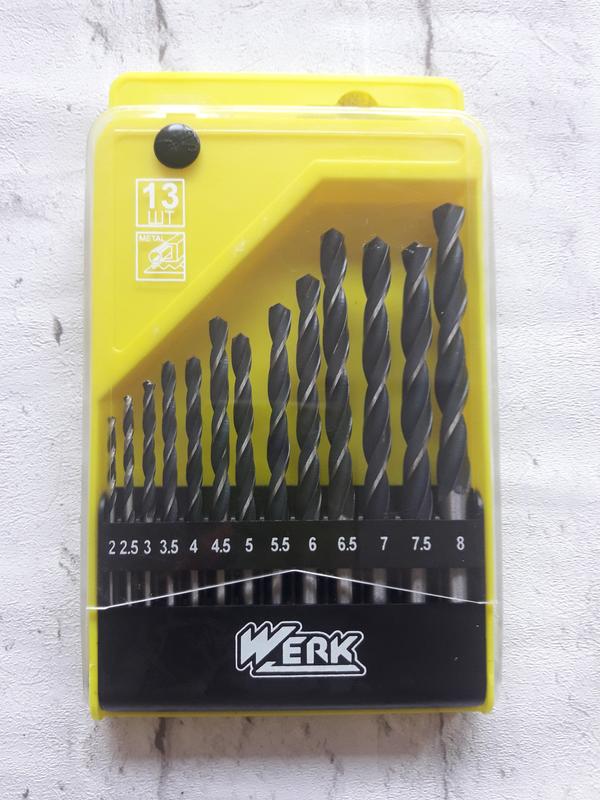 Набір свердл по металу WERK складається із 13 предметів різного діаметру (2;2.5;3;3.5;4;4.5;5;5.5;6;6.5;7;8мм). Свердла виконані із швидкоріжучої сталі яка забезпечує надійність, міцність та довгий термін експлуатації. Спіральний тип є найбільш популярним та оптимальним для створення отворів у металах. Канавки відводять зайву стружку та бруд. Циліндричний тип хвостика сумісний із електричними та ручними дрелями. Набір свердел поставляється в зручній пластиковій упаковці.