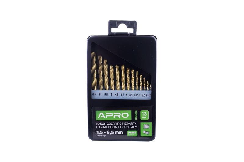 Набор сверл по металлу apro - 13 шт. (1,5-6,5 мм) титан