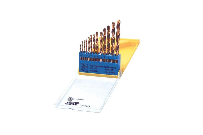 Предназначены для обработки легированной и нелегированной стали с пределом прочности при растяжении до 900 Н/мм, металлокерамических сплавов на основе железа, ковкого чугуна, меди, плексигласа. Входящие в состав наборов высокопроизводительные спиральные свёрла золотистого цвета с соответствущим диаметру сверления цилиндрическим хвостовиком изготовлены из быстрорежущей стали и покрыты нитридом титана (HSS-TIN), обеспечивающим минимальное трение, увеличивающим износостойкость сверла и повышающим скорость сверления на 40%. Поставляется в пластиковом боксе.