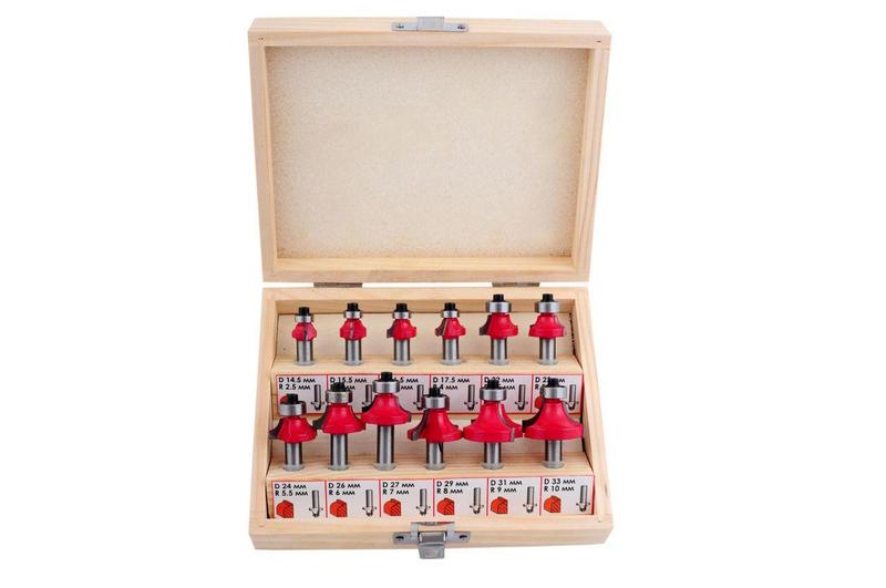 Калевочные фрезы "Intertool", предназначены для создания различных профилей по кромке деревянной заготовки. Наличие подшипника на каждой фрезе позволяет обрабатывать профиль заготовки без применения дополнительного оборудования и упора фрезерного станка на опорную направляющую. С их помощью изготавливают фигурные ножки столов и стульев, шкафов и декоративных изделий. Все фрезы (12 шт.) укомплектованы в специальный деревянный кейс, который удобен как для хранения, так и для транспортировки. Диаметр фрез 15,5 - 33 мм. Диаметр хвостовика 8 мм. Твердость по шкале Роквелла: 89 HRC; Количество в наборе: 12 ед.; Диаметр фрезы: 15,5-33 мм; Диаметр хвостовика: 8 мм; Комплектация: фрезы, деревянный кейс, шестигранный ключ для замены подшипников