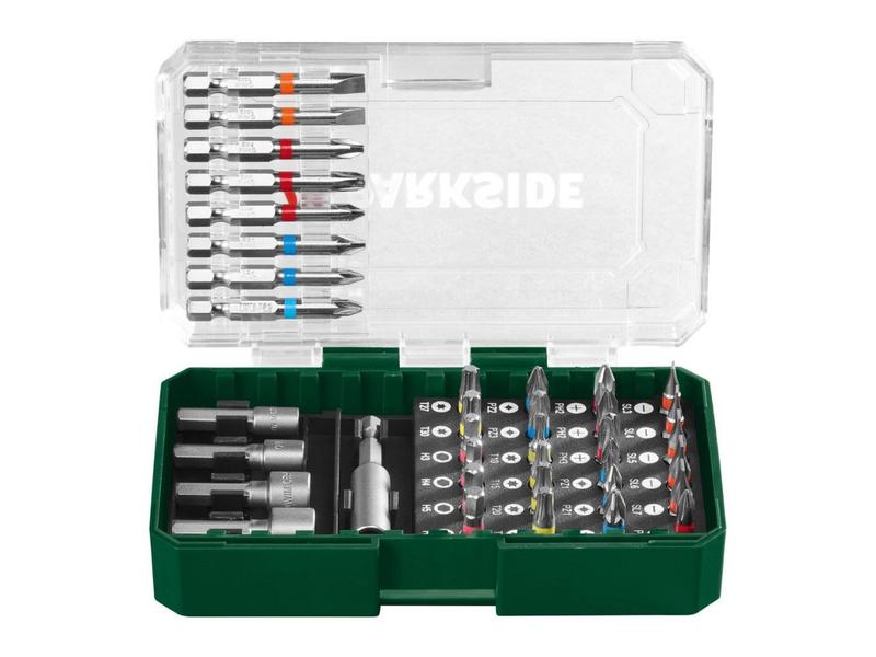 Профессиональный набор сверл и бит PARKSIDE включает 37 предметов для работы с различными материалами: металлом, деревом и камнем. В комплекте есть 15 спиральных сверл из высокоскоростной стали с титановым покрытием, 15 сверл для камня из высококачественной стали и твердосплавным наконечником, а также 15 сверл для дерева с точной центрирующей точкой. Кроме того, есть 32 бита, 4 торцевых ключа и магнитный держатель для удобного использования. Все инструменты изготовлены из крепких материалов для длительной эксплуатации. Этот набор станет незаменимым помощником как для домашних мастеров, так и профессионалов.