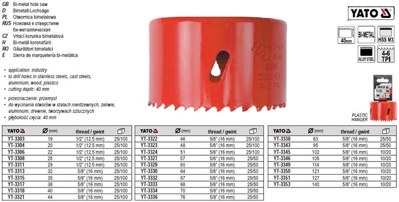 Пила кольцевая yato кільцева бі-металева hss m3 ø=40 мм yt-3318