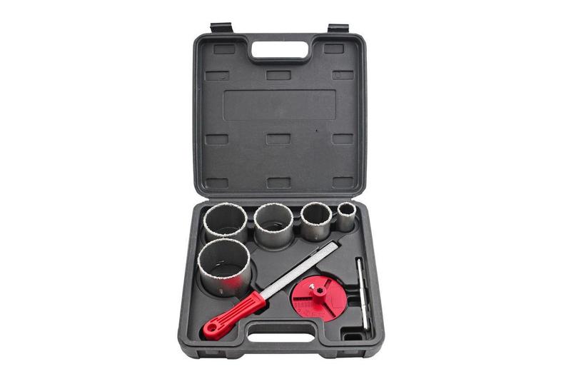 Набор корончатых сверл по плитке с размерами 33-83 мм SD-0428 предназначен для сверления больших отверстий. Сверла с шестигранным хвостовиком изготовлены из стали с вольфрамовым напылением, оснащены направляющим сверлом. В комплект входит 5 сверл различных диаметров, а также напильник. Все инструменты укомплектованы в специальный чемоданчик. Допустимое количество оборотов 800-1500 об/мин. Сфера применения: кирпич, стеклопластик, зеркало, керамика, фарфор, стекло. Особенности Широкий спектр применения, Вольфрамовое напыление, Направляющее сверло. Применение: для плитки, бетона, кирпича, пластика и дерева; Количество в наборе: 5 ед.; Диаметр сверла: 33, 53, 67, 73 мм.