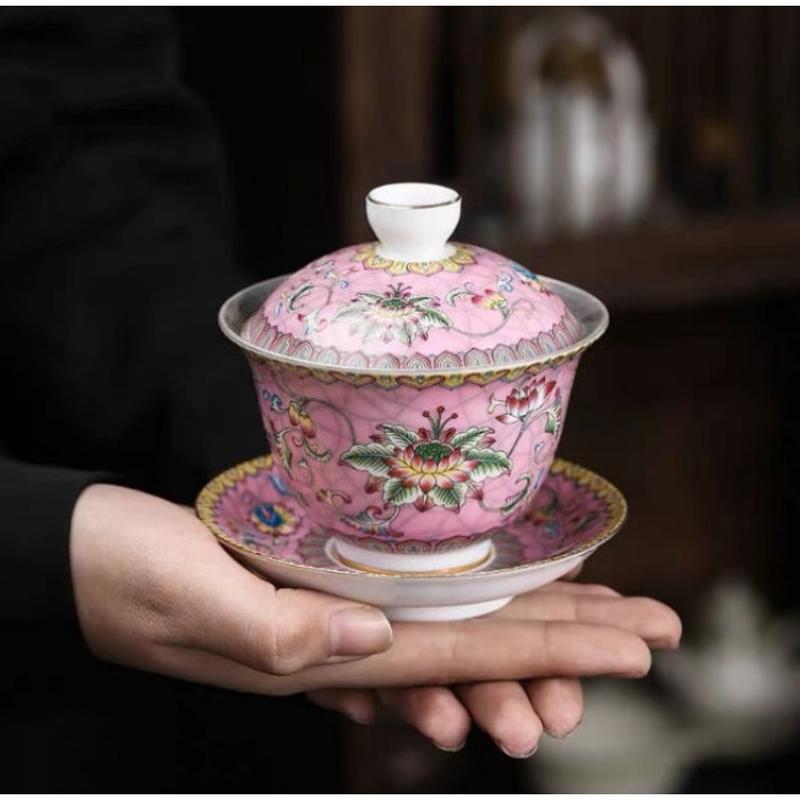 Гайвань лотосовый пруд розовый 200 мл для чая , для чайной церемонии