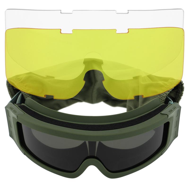 Очки защитные маска со сменными линзами и чехлом sposune jy-027-3 оправа-оливковая цвет ли...