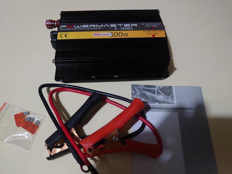 Инвертор, преобразователь тока 12/220V - 300W,пиковая 600Вт - мощный, компактный, фирменная упаковка. Сделан по европейским стандартам на экспорт для Турции! Автомобильный инвертор Powermaster 300 Вт. Преобразователь напряжения 12/220 - альтернативное питание приборов, работающих от сети. Автомобильный преобразователь напряжения Powermaster 12/220 , мощностью 300 Вт(пиковая 600Вт) - устройство, предназначенное для подключения и использования разнообразной бытовой техники, электроинструмента, ноутбука, телефона, различной видео- и аудиотехники, а также прочих электроприборов в условиях, где нет сетевых источников питания. Например, в путешествиях на автомобиле, прогулках на катере, в гараже, на даче, в аварийных ситуациях. В качестве источника напряжения ±12 В могут применяться аккумуляторы автомобильные,тяговые,гелевые, а также ветровые и солнечные генераторы. На передней панели устройства расположены индикаторы режима работы, индикатор заряда аккумулятора, розетка для электроприборов, тумблер включения, тумблер переключения автомобильный или другой тип аккумулятора и USB-порт. Охлаждение инвертора постоянное и осуществляется при помощи кулера, установленного на задней панели прибора. Там же находятся клеммы для подключения кабеля от аккумулятора и 2 предохранителя (FUSE), которые легко заменить в случае их выхода из строя. В комплекте идут два запасных предохранителя. При напряжении аккумуляторной батареи ±10.2-10.8 В и превышении пиковой мощности нагрузки зажигается красный индикатор. Автоматическое отключение устройства происходит при низком входном и падении выходного напряжения. Powermaster 12/220 , мощностью 300 Вт(пиковая 600Вт) имеет надежную тепловую защиту, срабатывающую при температуре > 45°C, защиту от перегрузки и короткого замыкания на выходе. Автомобильный инвертор Powermaster 12/220 , мощностью 300 Вт(пиковая 600Вт) - современное, компактное и надежное устройство, которое гарантированно выручит Вас в самых непредвиденных ситуациях! Экспортный вариант сделан для Турции по Европейским стандартам качества! В комплекте: - Преобразователь Powermaster 12/220 , мощностью 300 Вт(пиковая 600Вт); - Кабель для подключения инвертора от прикуривателя, при нагрузке до 200 Ватт: 1 шт.; - Кабель для подключения инвертора от аккумулятора, при нагрузке свыше 200 Ватт: 1 шт.; - Два запасных предохранителя.