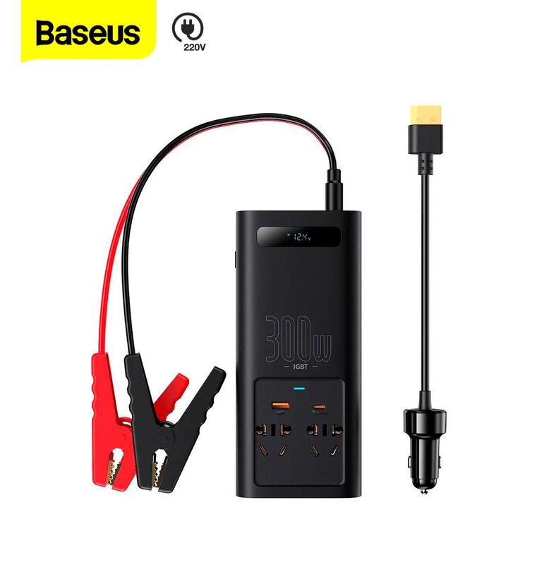 Инвертор Baseus IGBT Power Inverter 300W 12v 220v, чистый синус Автомобильный инвертор Baseus IGBT Power Inverter изготовлен из высококачественных материалов. Прост, удобен и надежен. Компактный размер позволяет брать его с собой куда угодно. Этот аппарат поможет подключить почти любое устройство, если нет подключения к сети или в случае отключения света. К инвертору можно подключить минихолодильник, колонку, мультиварку, проектор, заряжать ноутбук, планшет, смартфон, фотокамеру и множество других гаджетов. Характеристики: - Мощность: 300 Вт - Разъемы: Type-C, USB, 2AC 220В - Входное напряжение и сила тока: 12 В - Выходное напряжение и сила тока: 220 В - AC Выходы: 100V-120V~, 60Hz 300W Max - Type-C Выход: 5V/3A, 9V/2.77A, 12V/2.5A Max - USB-A Выход: 5V/3A, 9V/2A, 10V/2A, 12V/2.5A Max - Питание через клеммы: 12V=40A - Питание через прикуриватель: 12V=20A Max - Материал: ABS-пластик - Размеры: 201x90x46.5 мм - Вес: 520 г Защита: - от короткого замыкания; - от перегрева; - от перегрузки; - от неправильного подключения. Комплектация: + Инвертор, + Клеммы, + Кабель, + Инструкция, + Коробка