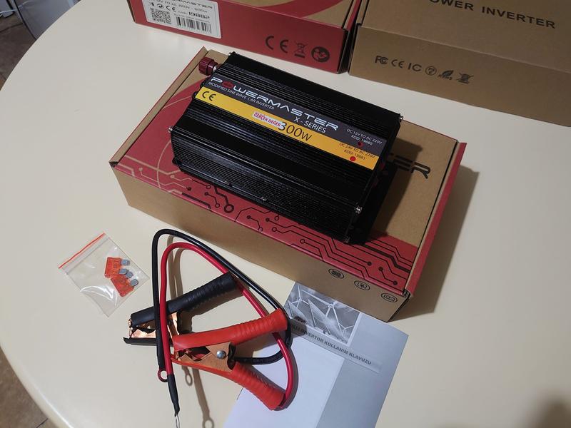 Инвертор, преобразователь тока 12/220V - 300W,пиковая 600Вт - мощный, компактный, фирменная упаковка. Сделан по европейским стандартам на экспорт для Турции! Автомобильный инвертор Powermaster 300 Вт. Преобразователь напряжения 12/220 - альтернативное питание приборов, работающих от сети. Автомобильный преобразователь напряжения Powermaster 12/220 , мощностью 300 Вт(пиковая 600Вт) - устройство, предназначенное для подключения и использования разнообразной бытовой техники, электроинструмента, ноутбука, телефона, различной видео- и аудиотехники, а также прочих электроприборов в условиях, где нет сетевых источников питания. Например, в путешествиях на автомобиле, прогулках на катере, в гараже, на даче, в аварийных ситуациях. В качестве источника напряжения ±12 В могут применяться аккумуляторы автомобильные,тяговые,гелевые, а также ветровые и солнечные генераторы. На передней панели устройства расположены индикаторы режима работы, индикатор заряда аккумулятора, розетка для электроприборов, тумблер включения, тумблер переключения автомобильный или другой тип аккумулятора и USB-порт. Охлаждение инвертора постоянное и осуществляется при помощи кулера, установленного на задней панели прибора. Там же находятся клеммы для подключения кабеля от аккумулятора и 2 предохранителя (FUSE), которые легко заменить в случае их выхода из строя. В комплекте идут два запасных предохранителя. При напряжении аккумуляторной батареи ±10.2-10.8 В и превышении пиковой мощности нагрузки зажигается красный индикатор. Автоматическое отключение устройства происходит при низком входном и падении выходного напряжения. Powermaster 12/220 , мощностью 300 Вт(пиковая 600Вт) имеет надежную тепловую защиту, срабатывающую при температуре > 45°C, защиту от перегрузки и короткого замыкания на выходе. Автомобильный инвертор Powermaster 12/220 , мощностью 300 Вт(пиковая 600Вт) - современное, компактное и надежное устройство, которое гарантированно выручит Вас в самых непредвиденных ситуациях! Экспортный вариант сделан для Турции по Европейским стандартам качества! В комплекте: - Преобразователь Powermaster 12/220 , мощностью 300 Вт(пиковая 600Вт); - Кабель для подключения инвертора от прикуривателя, при нагрузке до 200 Ватт: 1 шт.; - Кабель для подключения инвертора от аккумулятора, при нагрузке свыше 200 Ватт: 1 шт.; - Два запасных предохранителя.