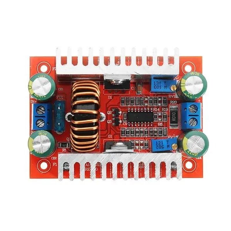 Повышает модуль DC-DC 400w постоянного напряжения с регулировкой тока и напряжения. Данное устройство благодаря своей функциональности имеет широкую область применения, например, для повышения напряжения автомобильных аудио усилителей; для зарядки аккумуляторов 10-60В; преобразователь напряжения для питания ноутбука от автомобильной сети 12В; питание светодиодов; в солнечной энергетике, а также в других целях, где нужно повысить напряжение на выходе, а также контролировать ток нагрузки. Характеристики: Входное напряжение: DC 8.5 - 50 В. Выходное напряжение: DC 10 В - 60 В (регулируемое, по умолчанию настроенное на 19В). Выходной ток: 0.2А – 12A (регулируемый). Входной ток 15А (макс). (при длительном использовании с входным током свыше 8А необходимо, используйте принудительное охлаждение). Выходная мощность до 400 Вт (макс). Эффективность преобразования: 96%. Рабочая температура: -40 ° C до + 85 ° C (если температура окружающей среды более 40 градусов, необходимо уменьшить мощность или задействовать принудительное охлаждение). Защита от короткого замыкания на выходе: нет (необходимо самостоятельно устанавливать предохранитель от замыкания на выходе). Защита от переполюсовки: нет (необходимо соблюдать полярность или установить дополнительную защиту в виде диодного моста.) Частота преобразования: 150кГц Защита от перегрузки по току: Да (если входной ток больше 15 А, модуль автоматически уменьшает выходное напряжение) Размер модуля: 67x48x28 мм