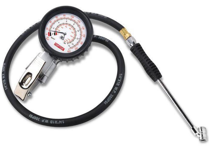 Пистолет для подкачки шин предназначен для легковой и грузовой техники. Многозадачный: 1.Проверка давления. 2. Накачка. 3. Спуск. Данный пистолет подкачки JEAL220B TOPTUL имеет алюминиевый наконечник с латунным клапанном и большой, легкочитаемый манометр с обрезиненным корпусом. Резиновый шланг высокого давления оснащен хромированным стальным патроном двойного действия. Подвижная насадка обеспечивает доступ ко всем вентилям. Спусковой крючок имеет два положения «Впуск» и «Выпуск». Эта модель идеально подходит для различных видов шин, особенно грузовых. Прост и легок в эксплуатации.