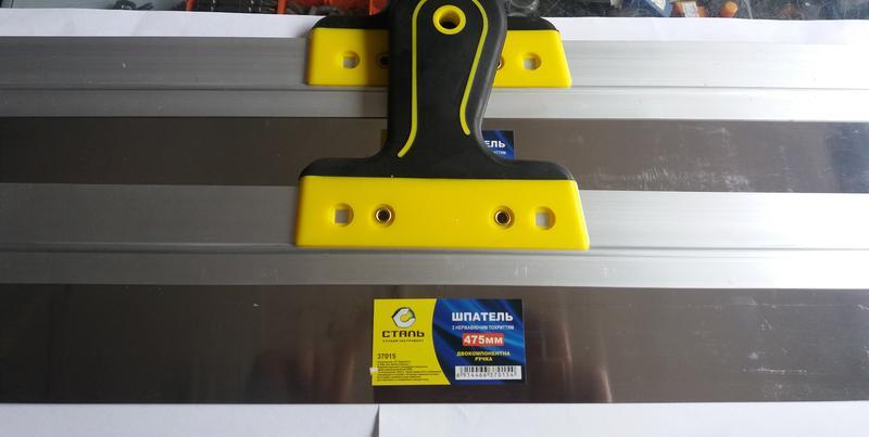Виробник: Сталь Тип інструмента: Інший вид інструменту Кілька примірників у наявності Производитель: Сталь Тип: шпатель фасадный Дополнительные характеристики: ширина - 475мм; толщина - 0,5мм; материал - нержавеющая 420 сталь; материал рукоятки - пластик/термопластическая резина (TPR). Комплект поставки: 1шт.