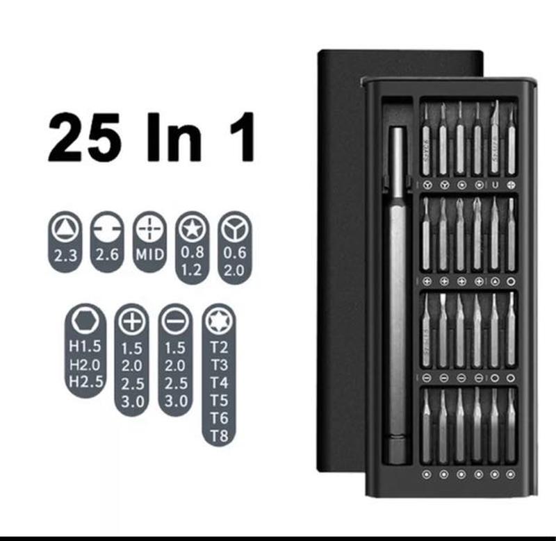 Тип інструмента: Викрутки Набір магнітних викруток 25 на 1 незамінна річ у господарстві. Кейс пластиковий. Рукоятка пластикова із вбудованим магнітом для утримання біт. Набір біт 24 шт.