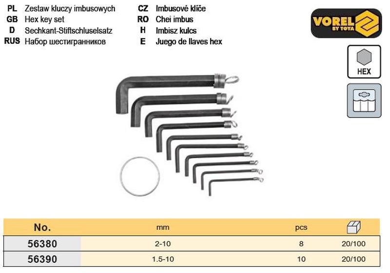 Набор ключи шестигранные польша шестигранки тип l hex 1,5-10 мм 10 штук vorel-56390