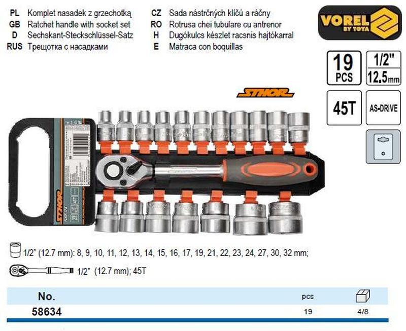 Набор головок торцевых польша 1/2" 18 штук sthor-58634