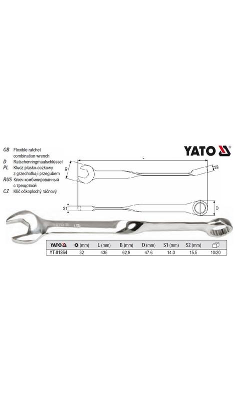 Ключ рожково-накидной крученый 90° cr-v м=32х435 yato польща yt-01864
