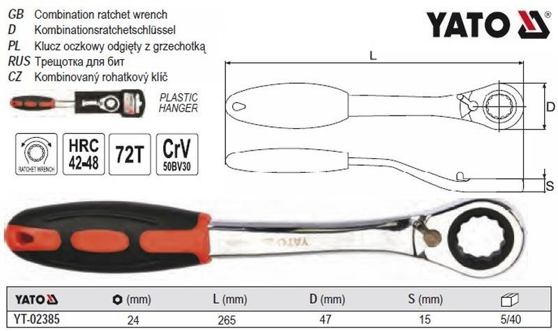 Ключ накидной выгнутый трещотка м24 cr-v yato польща yt-02385