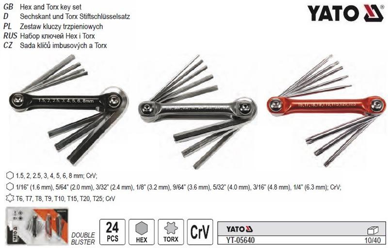 Набір ключів шестигранних yato польща hex h1.5-h8 torx t6-t25 24 штуки yt-05640