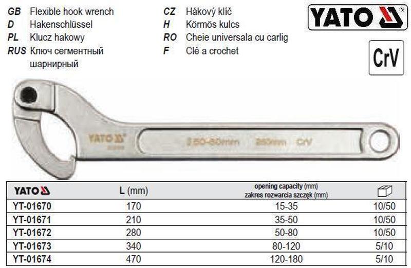 Ключ сегментный шарнирный m=15-35 мм l=170 мм yato польща yt-01670