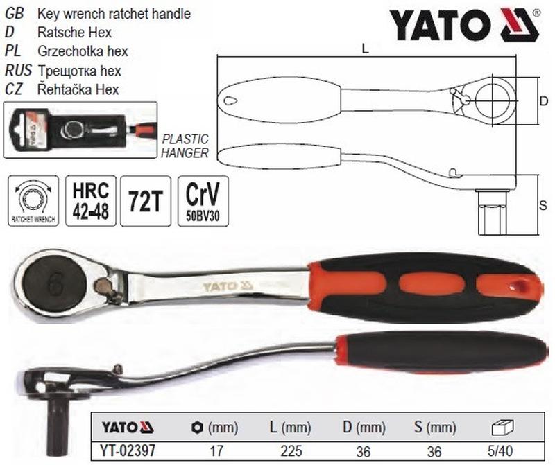 Трещотка ключ yato польша трищатка шестигранна вигнута hex17 hrc 42-48 yt-02397