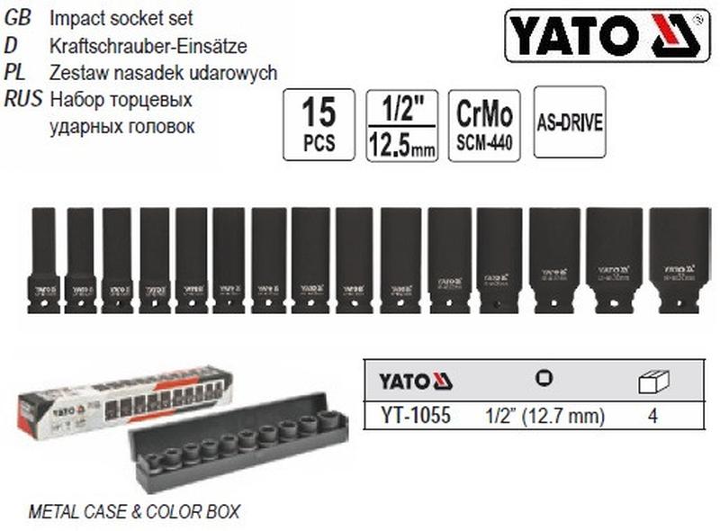 Набор головки торцевые yato польша ударные глубокие 1/2" м10-32 l=78 мм 15 штук yt-1055