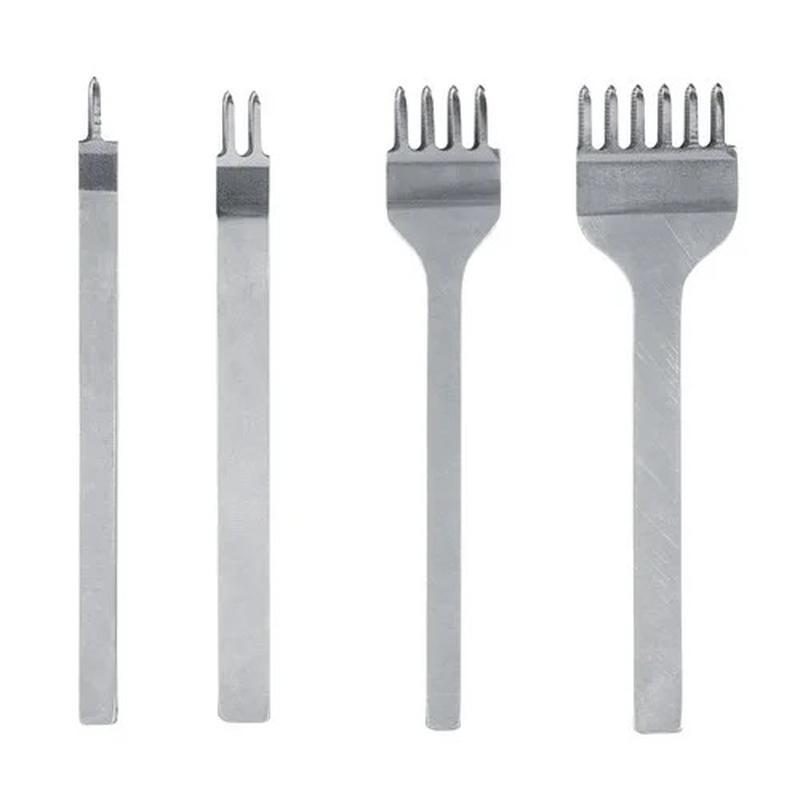Виробник: Інший виробник Тип інструмента: Пробійники Кілька примірників у наявності Комплект з 4 малих ромбоподібних пробійників для шкіри, які дозволять зробити рівний красивий шов. Кількість зубців: 1, 2, 4, 6 Відстань між центрами зубців: 4 мм Ширина зубця: 2.2 - 2.5 мм Матеріал: метал